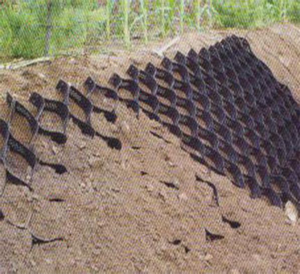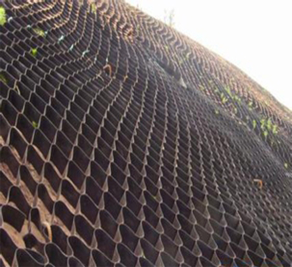 土工格室是由高強(qiáng)度的HDPE或PP共聚料寬帶,經(jīng)過強(qiáng)力焊接或鉚接而形成的一片網(wǎng)狀格室結(jié)構(gòu)。它伸縮自如,運輸時可縮疊起來,使用時張開并又充填土石或混凝土料,構(gòu)成具有強(qiáng)大側(cè)向限制和大剛度的結(jié)構(gòu)體。它可用來做為墊層,處理軟弱地基增大地基的承載能力,也可鋪設(shè)在坡面上構(gòu)成坡面防護(hù)結(jié)構(gòu),還可以用來建造支擋結(jié)構(gòu)等。