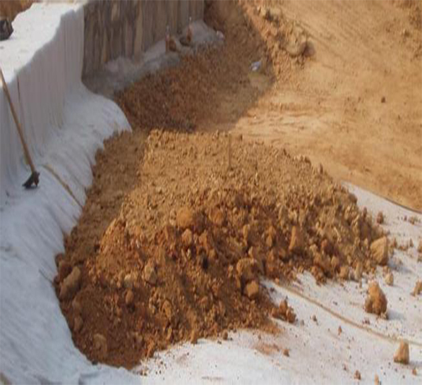 4、施工完畢后的膨潤(rùn)土墊上不得有泥塊、污物、雜物等可能損壞防滲層的異物存在。