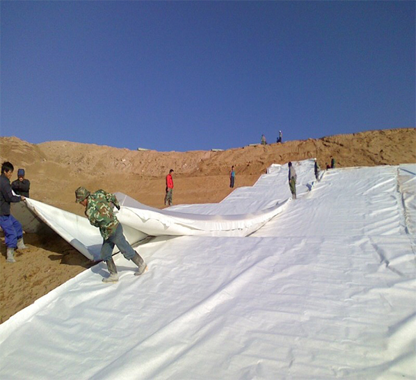 土工布作為土工膜的保護層,使保護防滲層不受損壞。為減少紫外線照射,增加抗老化性能,最好采用埋入法鋪設。