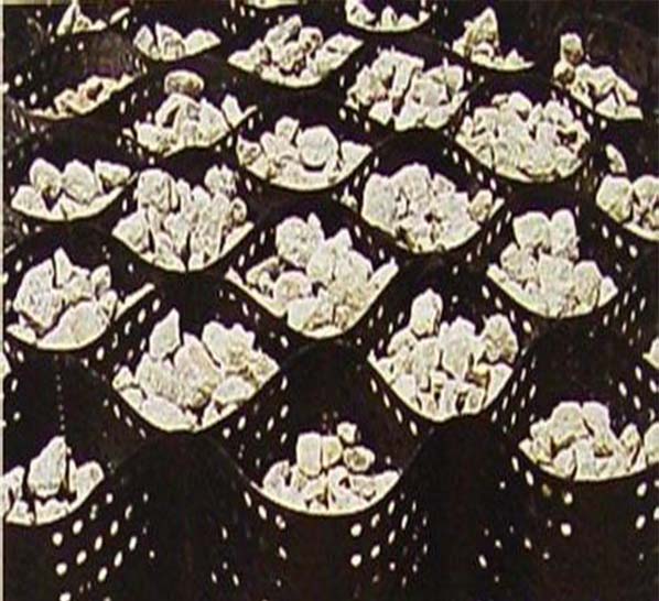 土工格室是由高強度的HDPE或PP共聚料寬帶,經(jīng)過強力焊接或鉚接而形成的一片網(wǎng)狀格室結(jié)構(gòu)。它伸縮自如,運輸時可縮疊起來,使用時張開并又充填土石或混凝土料,構(gòu)成具有強大側(cè)向限制和大剛度的結(jié)構(gòu)體。它可用來做為墊層,處理軟弱地基增大地基的承載能力,也可鋪設(shè)在坡面上構(gòu)成坡面防護(hù)結(jié)構(gòu),還可以用來建造支擋結(jié)構(gòu)等。