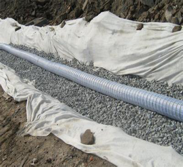 透水管是以防銹彈簧圈支撐管體,形成高抗壓軟式結(jié)構(gòu),無(wú)紡布內(nèi)襯過(guò)濾,使泥砂雜質(zhì)不能進(jìn)入管內(nèi),從而達(dá)到凈滲水的功能。滌綸絲外繞祉覆層具有優(yōu)良吸水性,能迅速收集土體中多余水份。橡膠筋使管壁被覆層與彈簧鋼圈管體成為有機(jī)一體,具有很好的透水功能,滲透水順利滲入管內(nèi),而泥砂雜質(zhì)被阻擋在管外,從而達(dá)到透水、過(guò)濾、排水之目的。